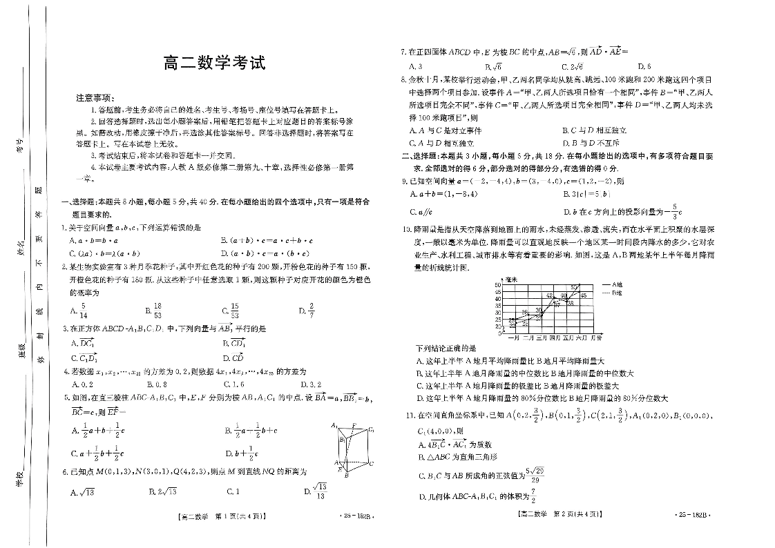 内蒙古赤峰市名校2024-2025学年高二期中联考数学