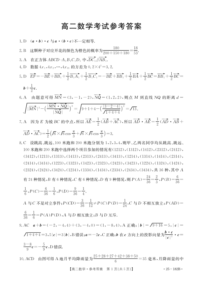 内蒙古赤峰市名校2024-2025学年高二期中联考数学答案