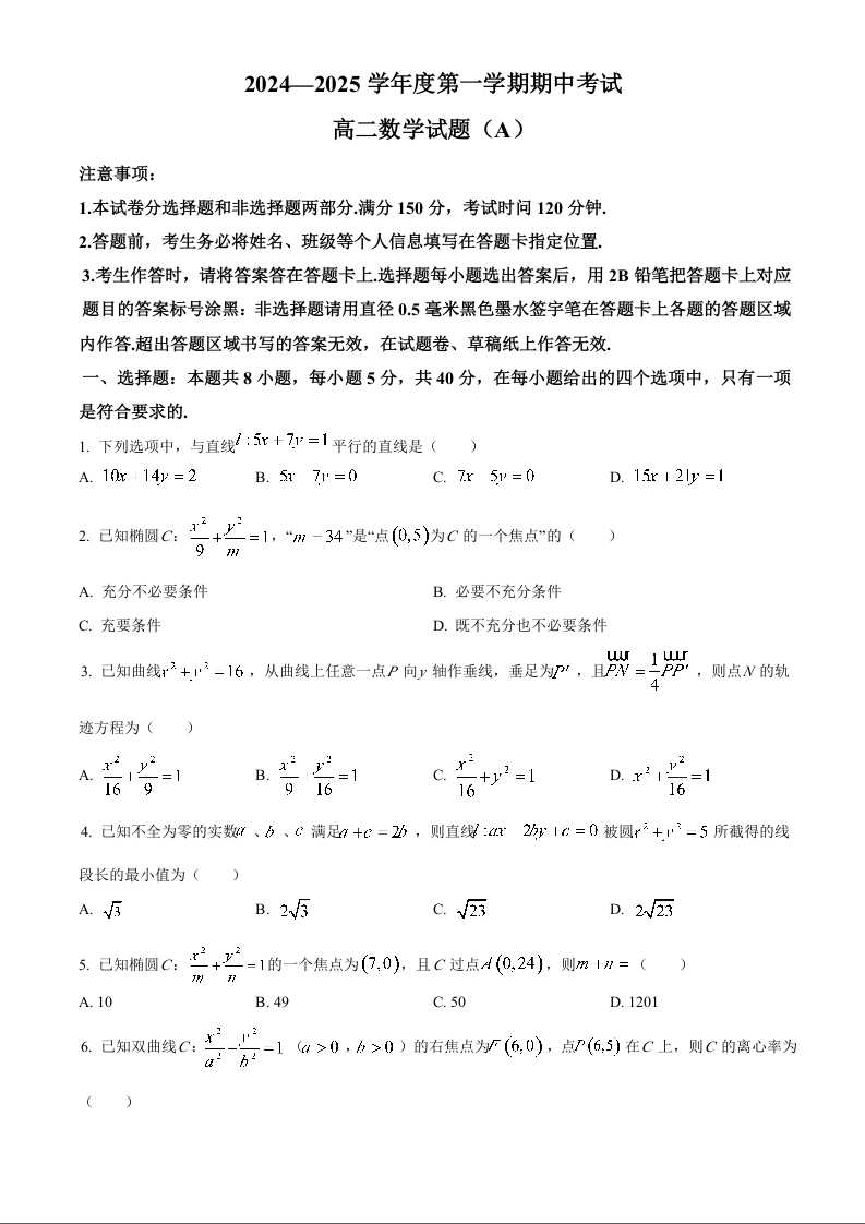 山东省菏泽市2024-2025学年度第一学期期中考试数学A+答案