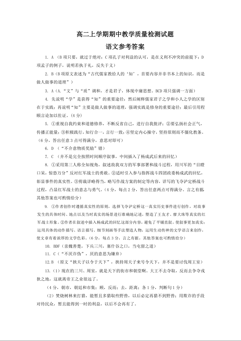 山东省聊城市2024-2025学年度第一学期期中教学质量检测语文答案