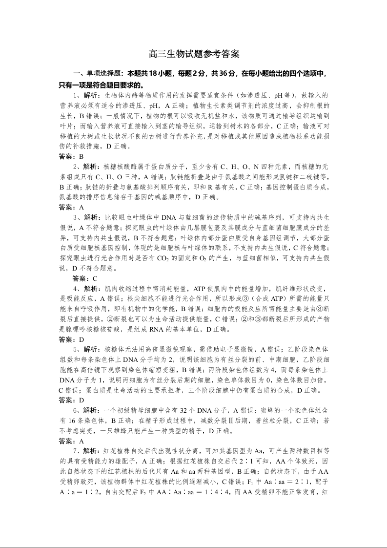 湖北省随州市部分高中联考协作体2025届高三上学期12月联考生物答案
