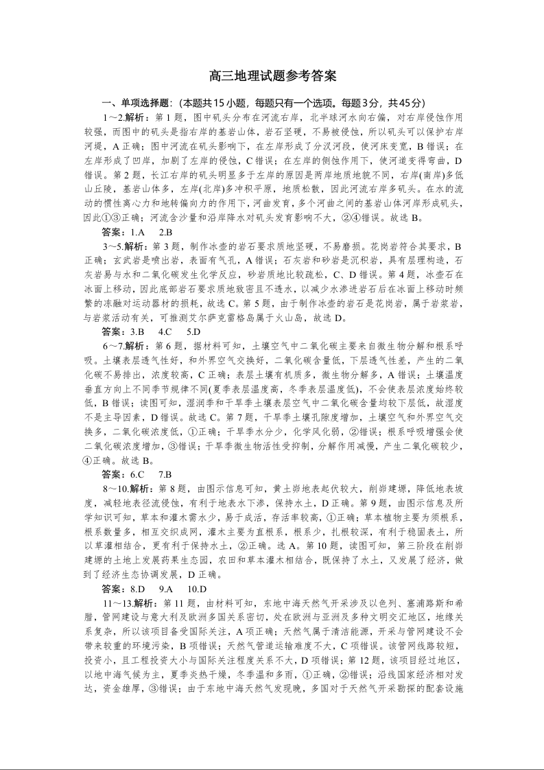 湖北省随州市部分高中联考协作体2025届高三上学期12月联考地理答案