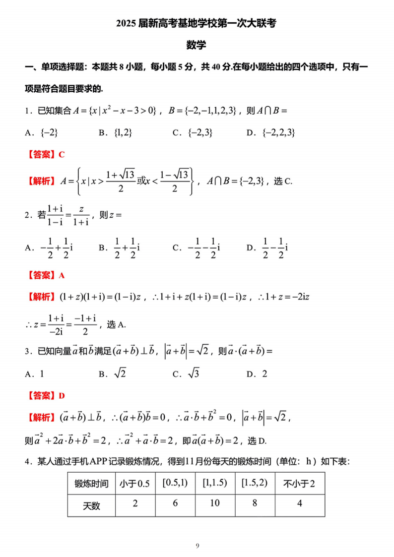 江苏省南通市新高考基地学校2025届高三上学期12月第一次大联考数学答案