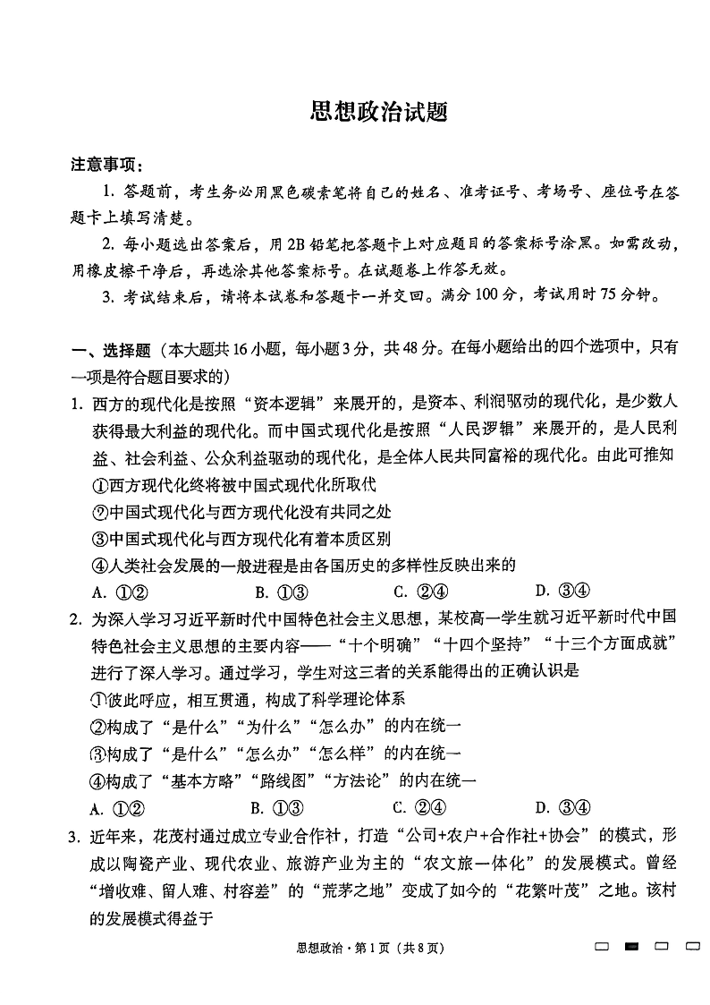 贵州省六校联盟(贵阳一中等校)2025届高三12月联考政治