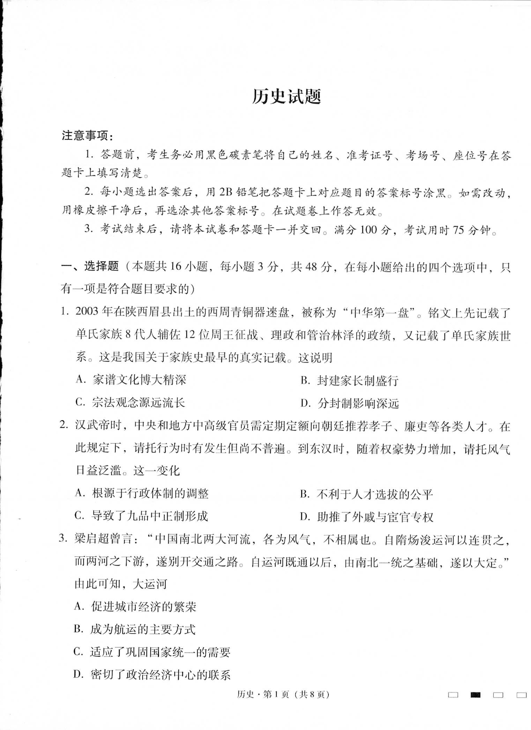 贵州省六校联盟(贵阳一中等校)2025届高三12月联考历史