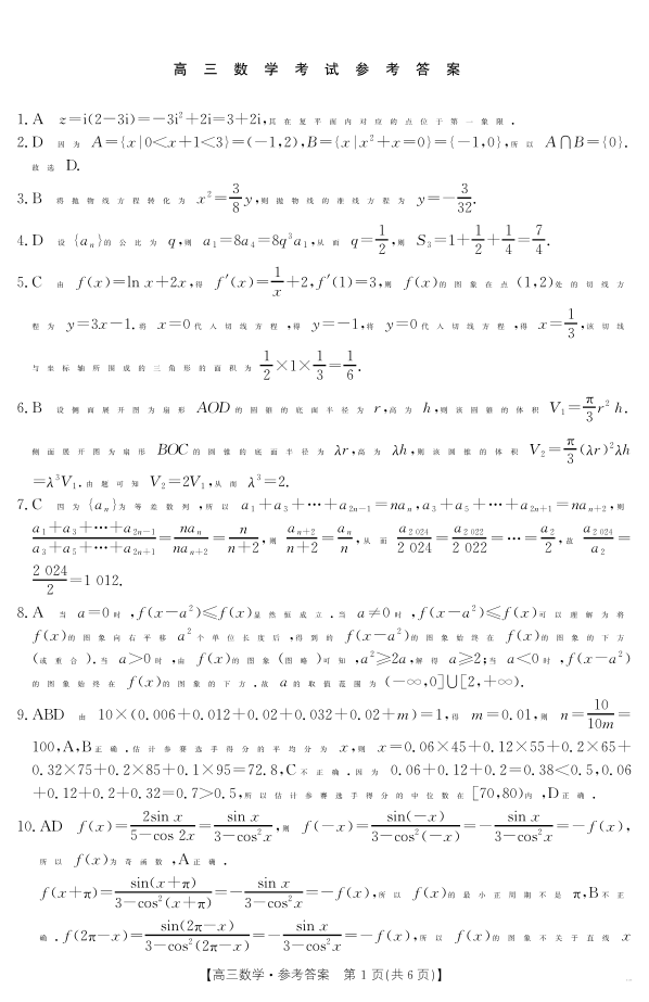 广西省区域高中2025届高三年级上学期12月联考数学答案