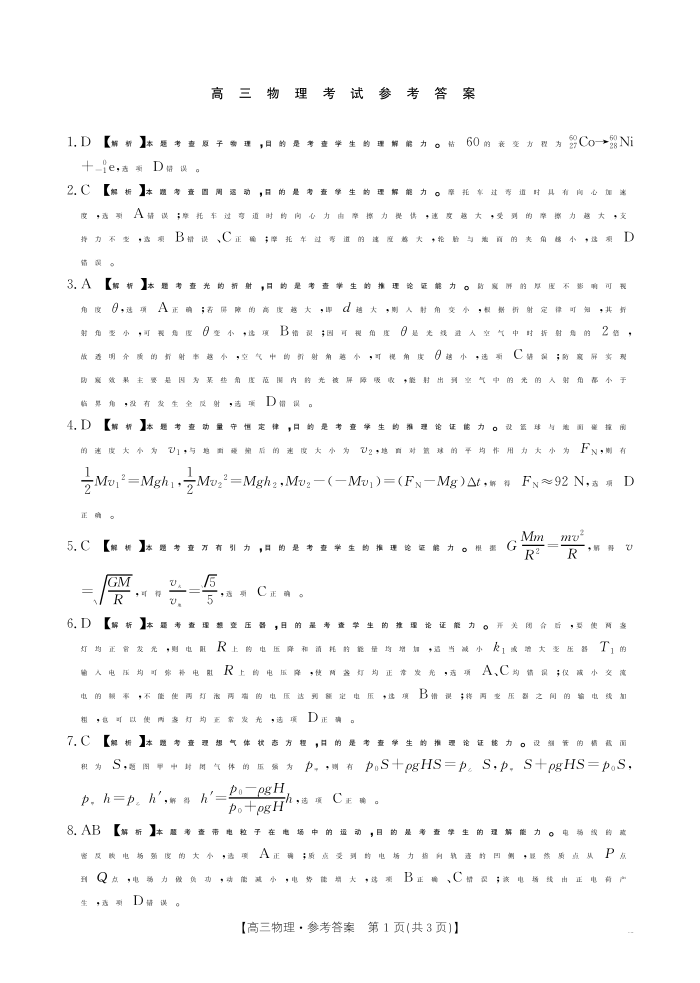广西省区域高中2025届高三年级上学期12月联考物理答案