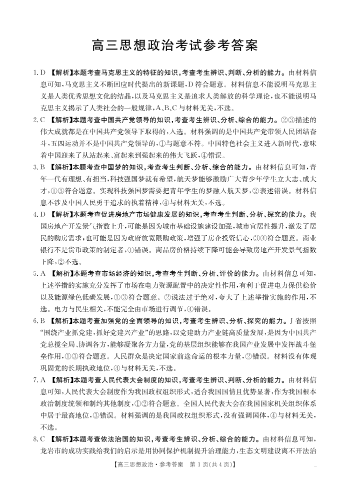 广西省区域高中2025届高三年级上学期12月联考政治答案