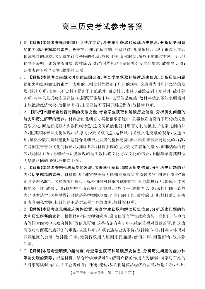 广西省区域高中2025届高三年级上学期12月联考历史答案