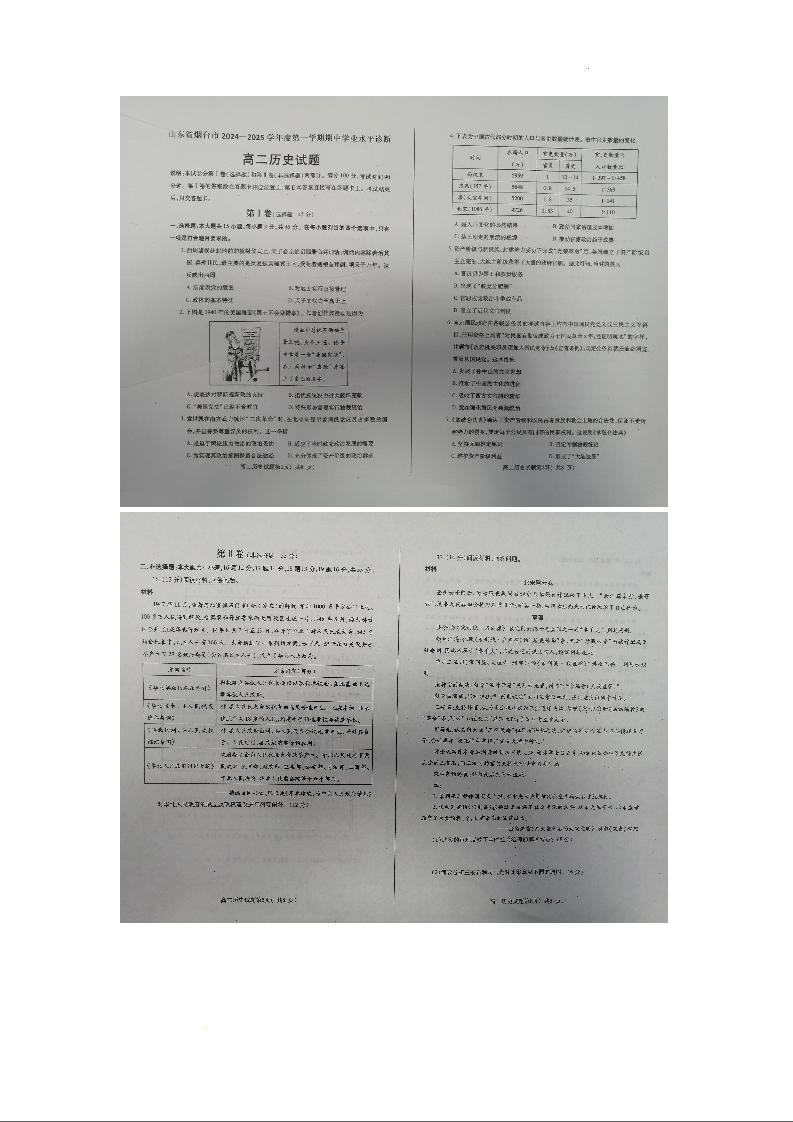 山东省烟台市2024-2025学年度第一学期期中学业水平诊断历史+答案