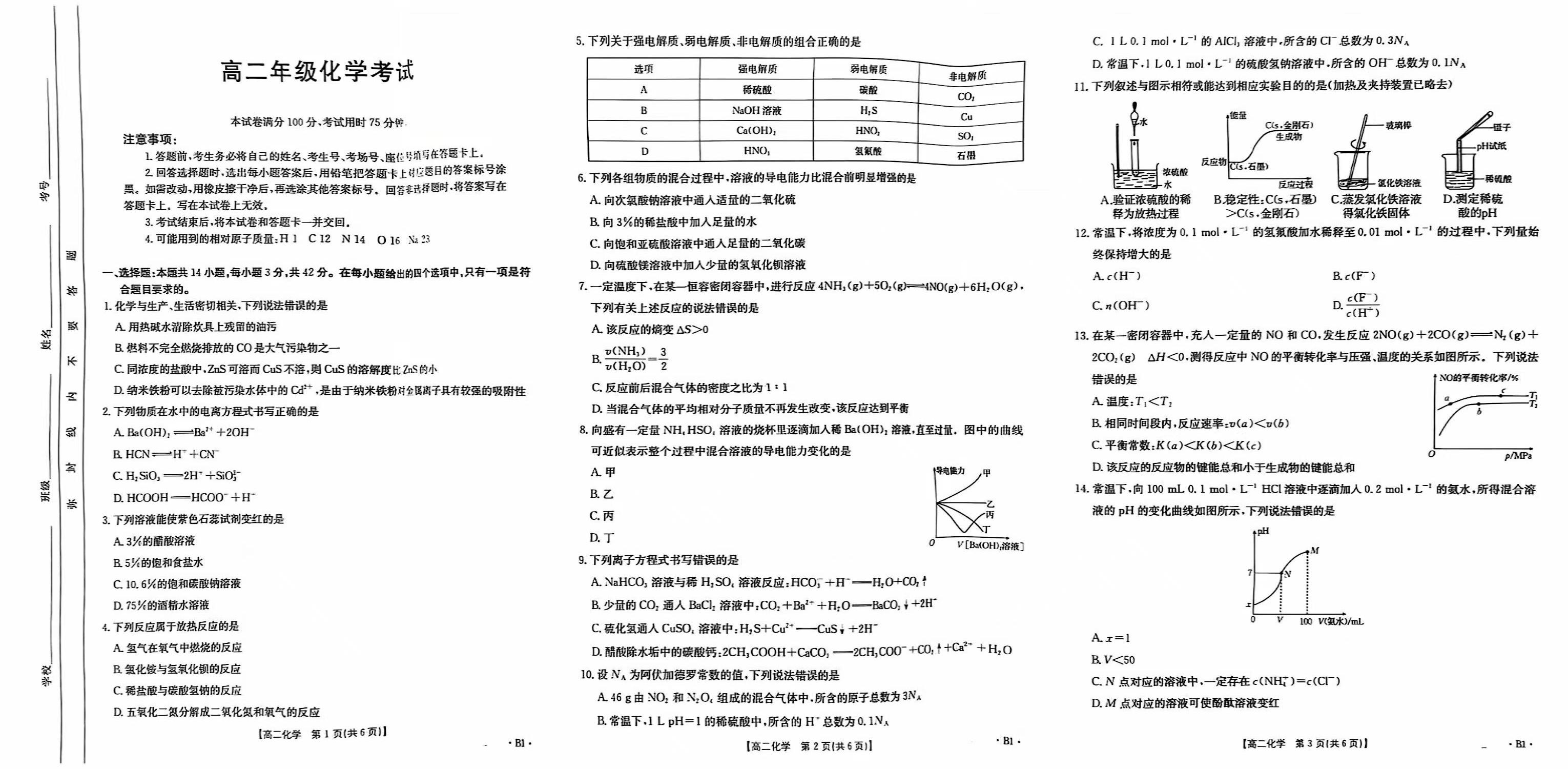 陕西省部分学校2024-2025学年高二11月期中考试化学