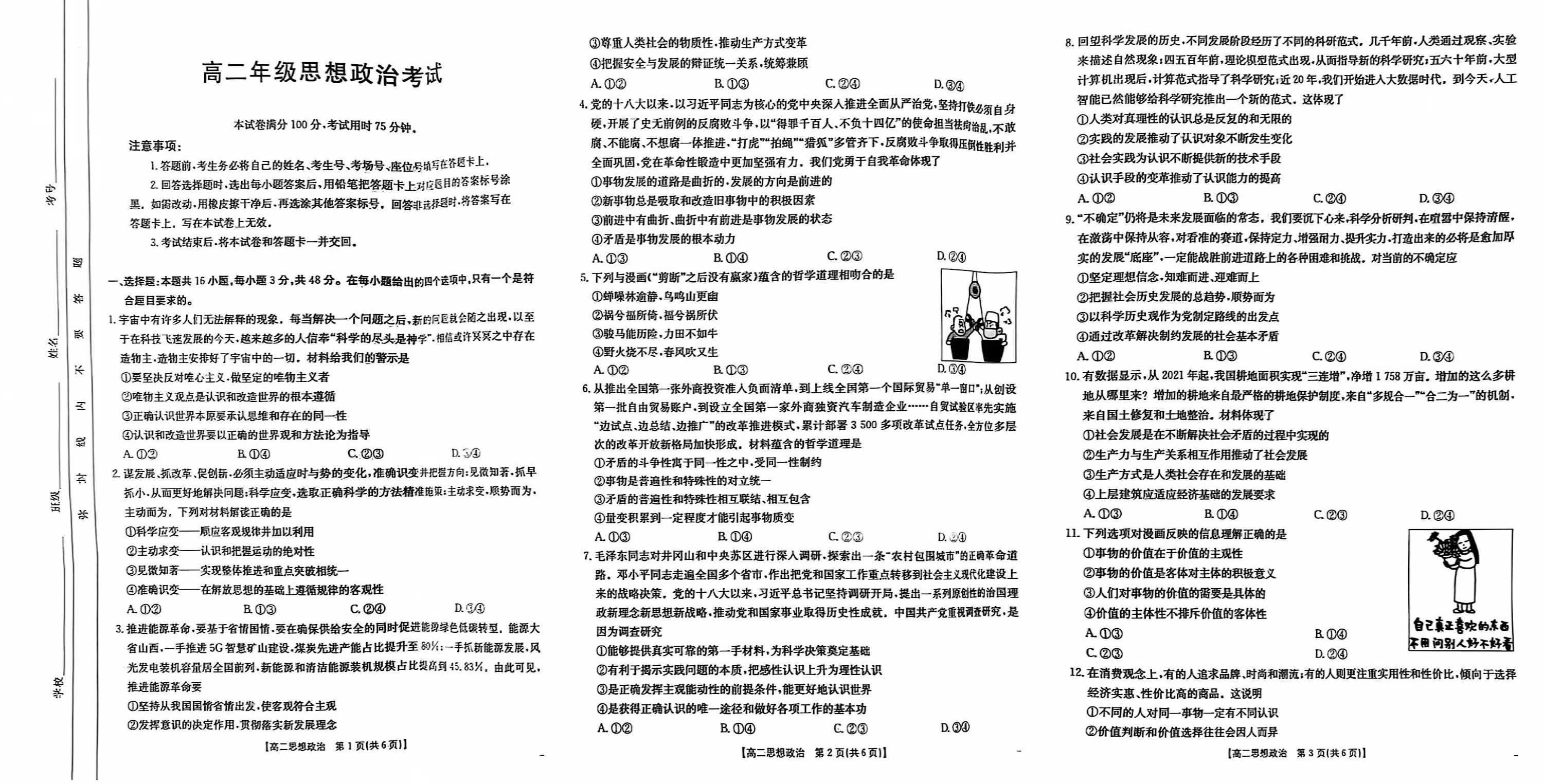 陕西省部分学校2024-2025学年高二11月期中考试政治
