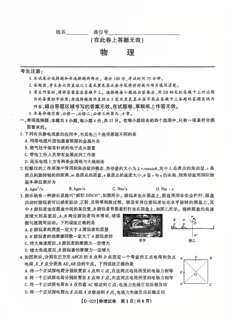 安徽省皖江名校2025届高三上学期12月质量检测物理