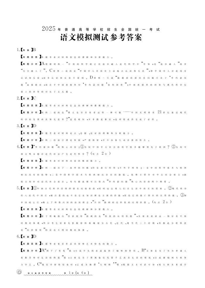甘肃省部分学校2025届高三12月模拟测试联考语文答案