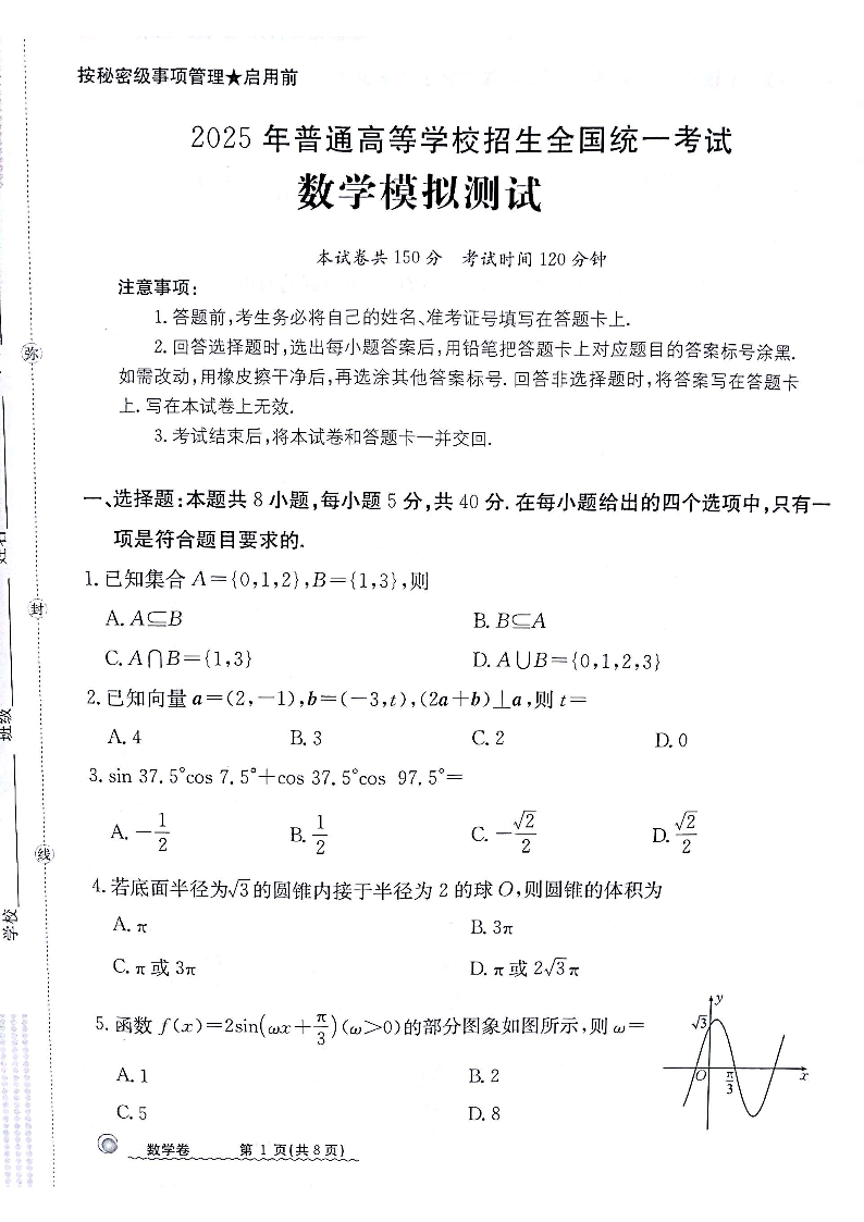 甘肃省部分学校2025届高三12月模拟测试联考数学