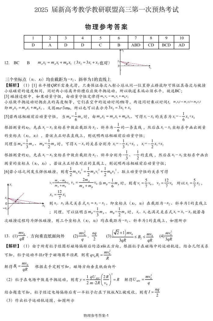 湖南省长郡二十校联盟2025届高三上学期第一次预热演练物理答案