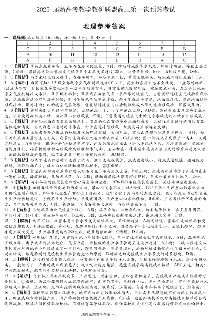 湖南省长郡二十校联盟2025届高三上学期第一次预热演练地理答案