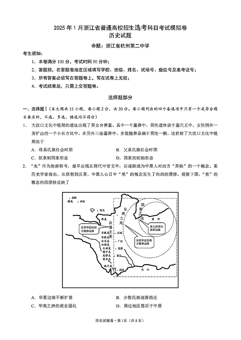 浙江省五校联盟2025届高三12月首考模拟历史