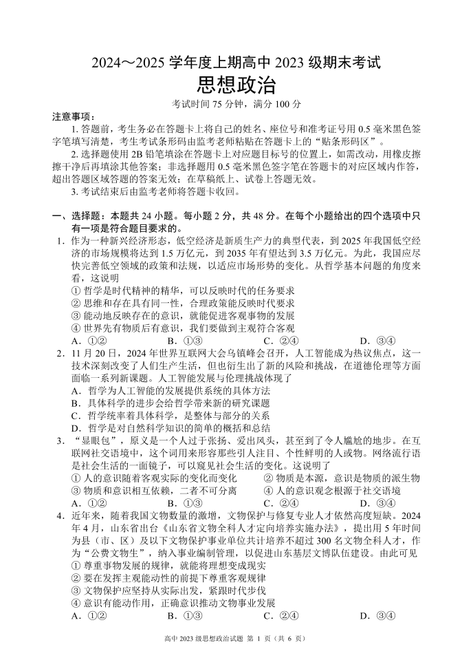四川省成都市蓉城名校联盟2024-2025学年高二上学期期末考试政治