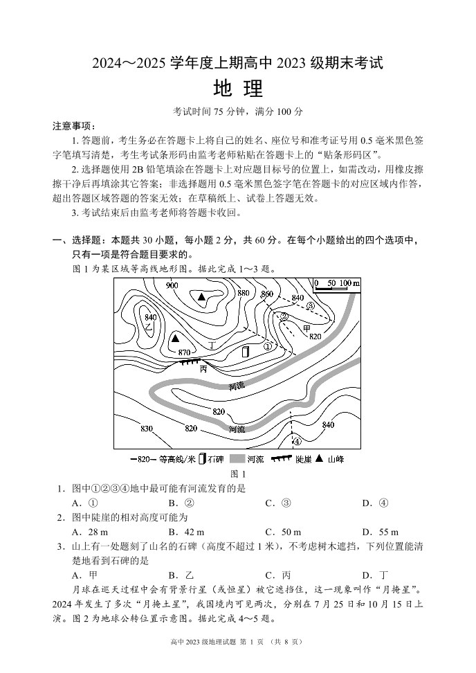 四川省成都市蓉城名校联盟2024-2025学年高二上学期期末考试地理