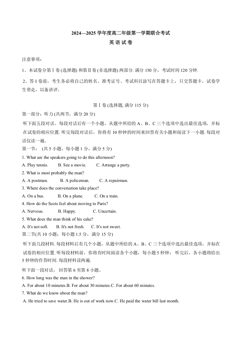 天津市三校2024-2025学年高二上学期12月联考试题英语