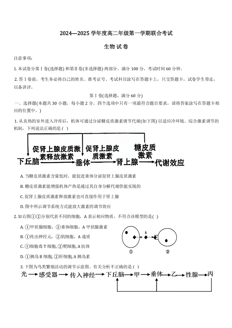 天津市三校2024-2025学年高二上学期12月联考试题生物+答案