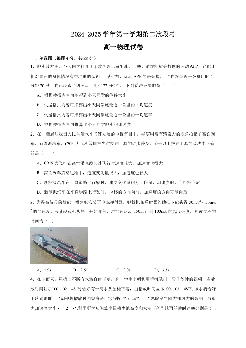 广东省肇庆市五校2024-2025学年高一上学期第二次段考试题英语物理+答案