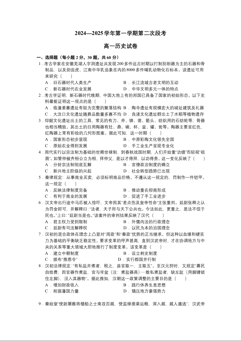 广东省肇庆市五校2024-2025学年高一上学期第二次段考试题英语历史+答案