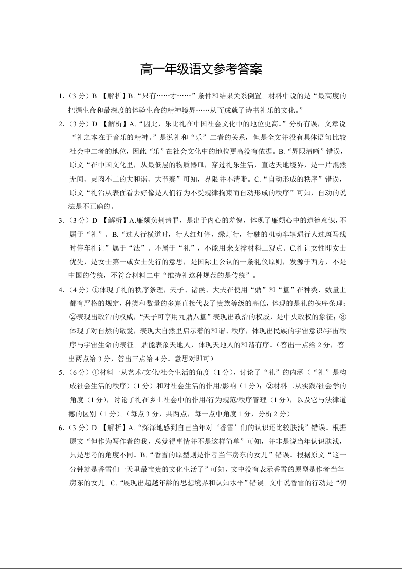 云南省西双版纳傣族自治州部分学校2024-2025学年高一上学期12月月考语文答案