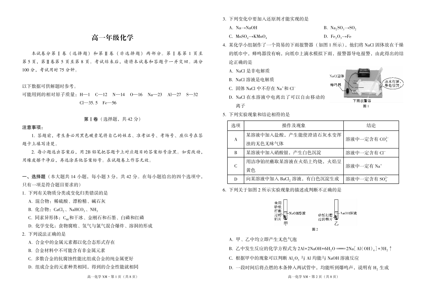云南省西双版纳傣族自治州部分学校2024-2025学年高一上学期12月月考化学