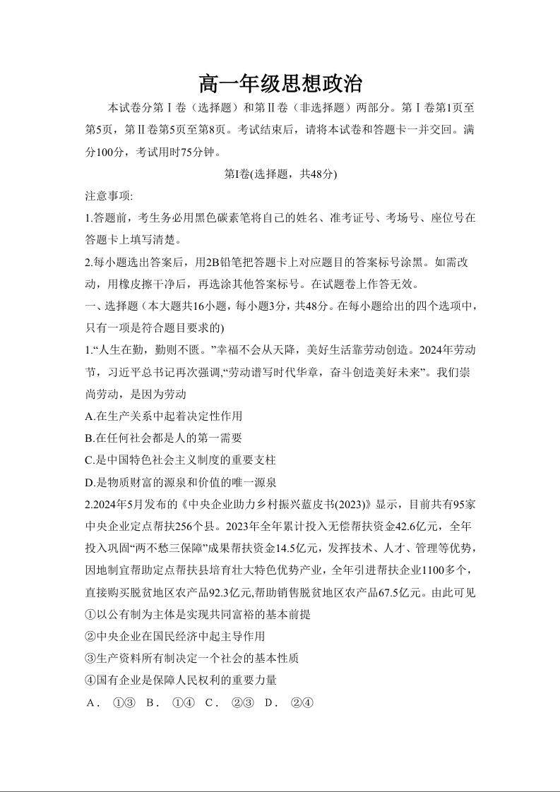 云南省西双版纳傣族自治州部分学校2024-2025学年高一上学期12月月考政治