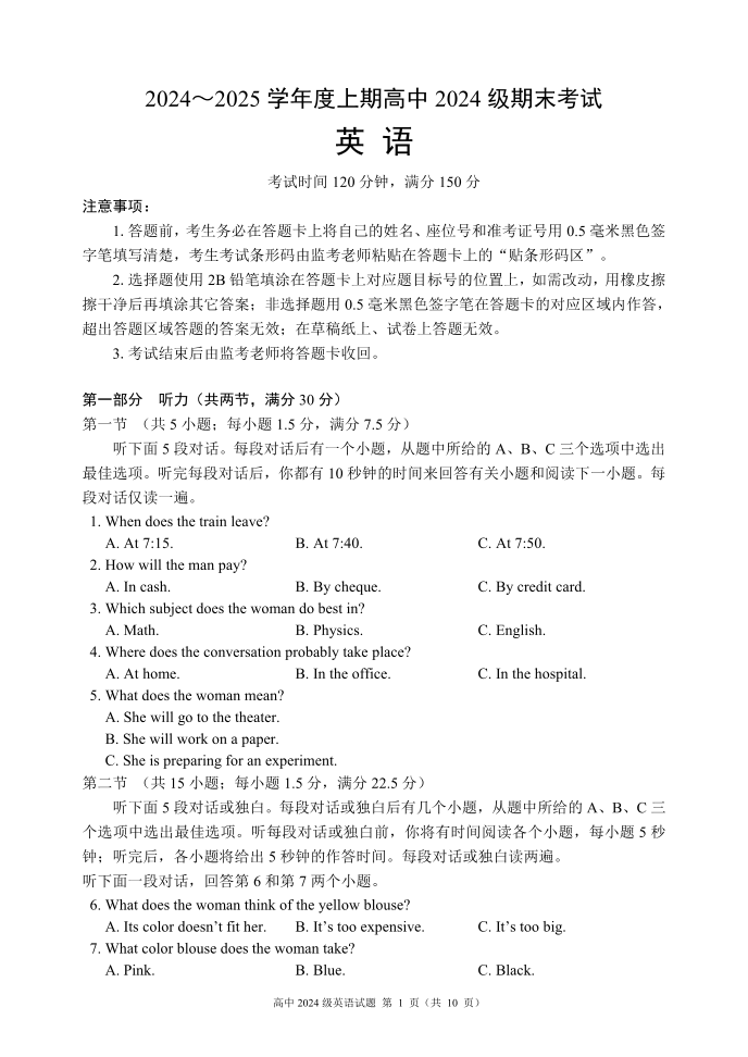 四川省成都市蓉城名校联盟2024-2025学年高一上学期期末考试英语