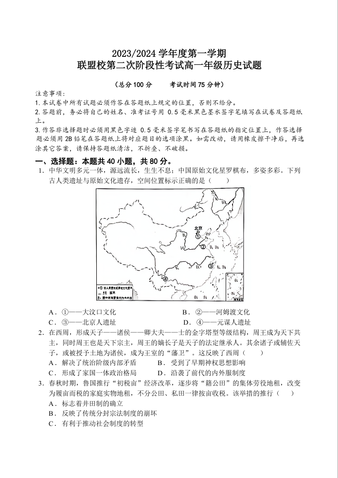 江苏省盐城市五校联考2024-2025学年高一上学期12月月考历史