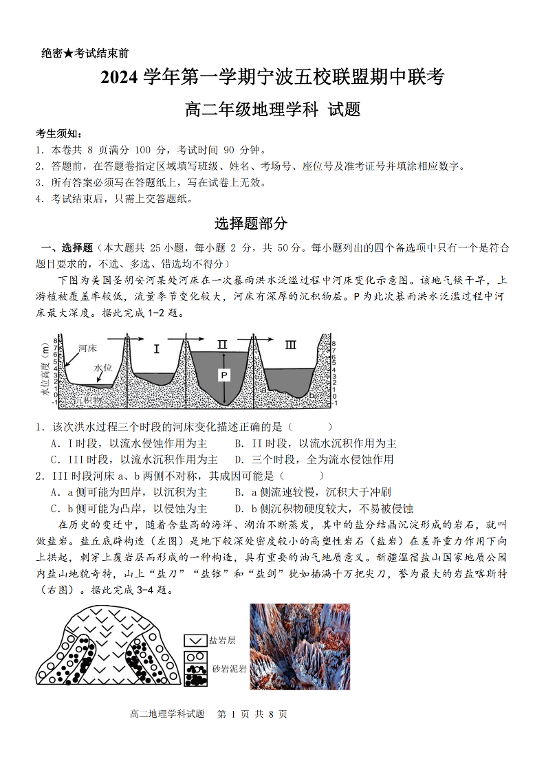 浙江省2024学年第一学期宁波五校联盟期中联考地理
