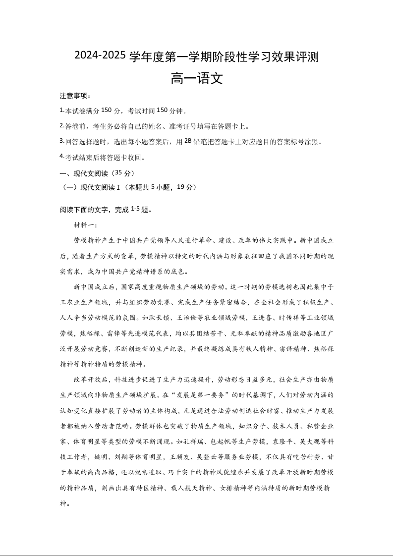 陕西省西安市部分学校2024-2025学年高一上学期12月联考语文+答案