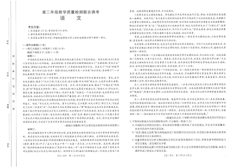 山东省部分高中2024-2025学年高二上学期12月联考语文+答案解析