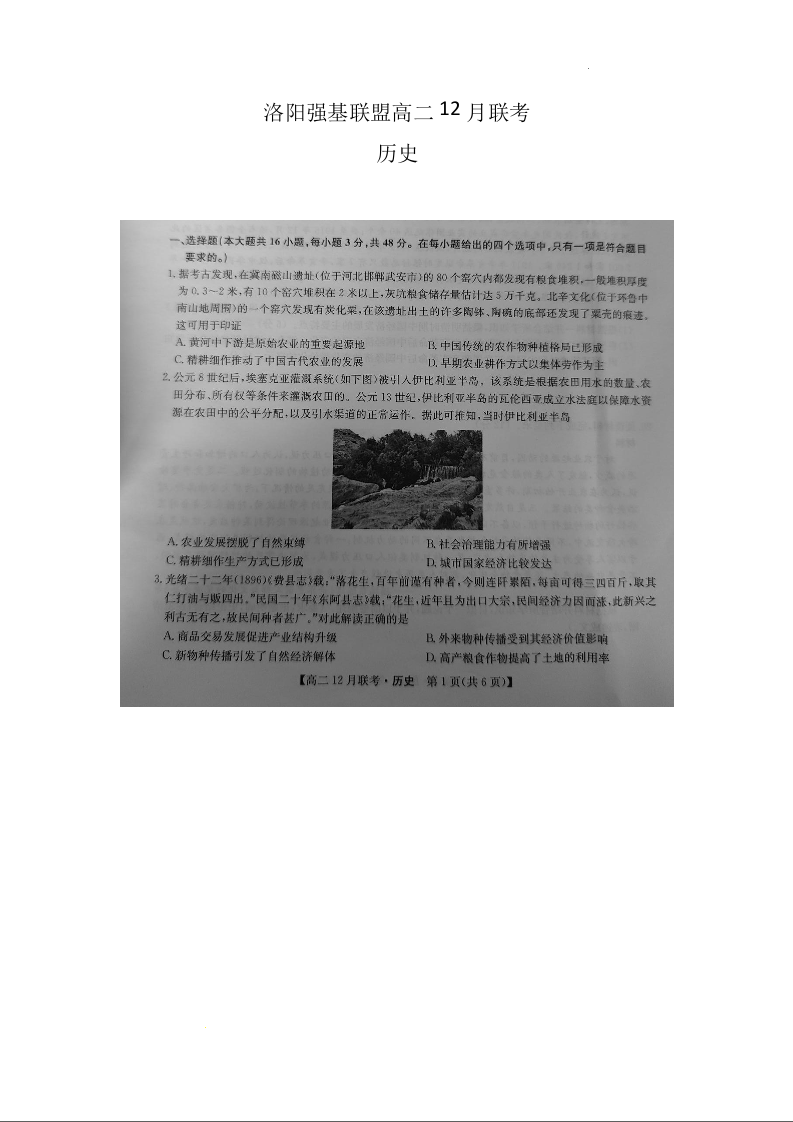 河南省洛阳市强基联盟2024-2025学年高二上学期12月月考历史
