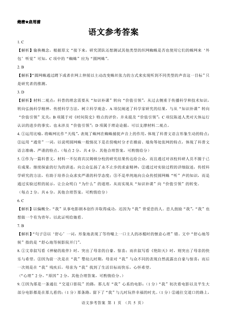 西北省分部分高中2025届高三上学期12月联考语文答案