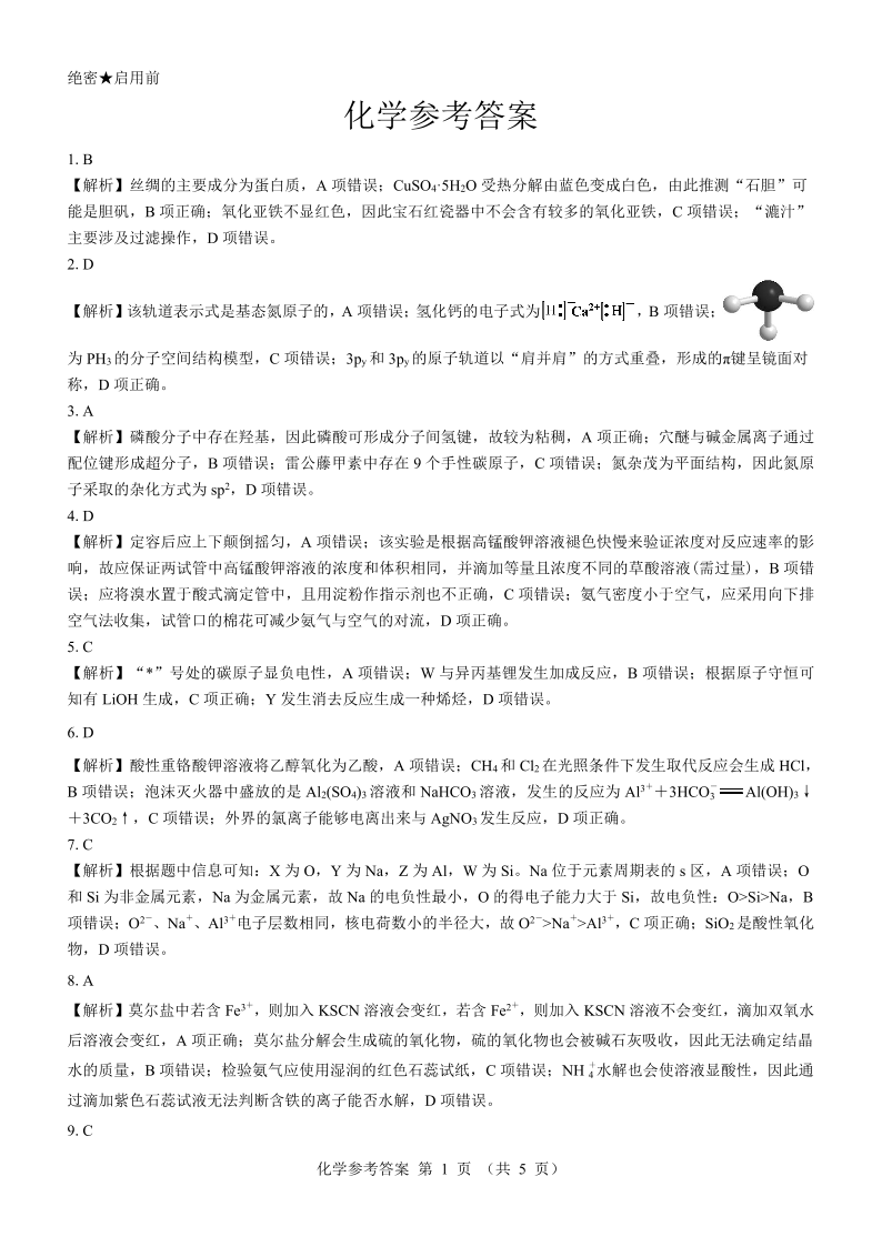 西北省分部分高中2025届高三上学期12月联考化学答案