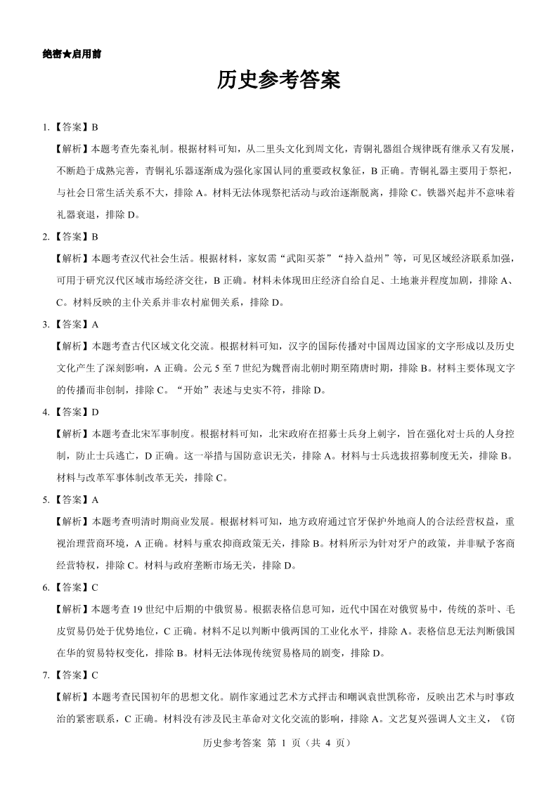 西北省分部分高中2025届高三上学期12月联考历史答案