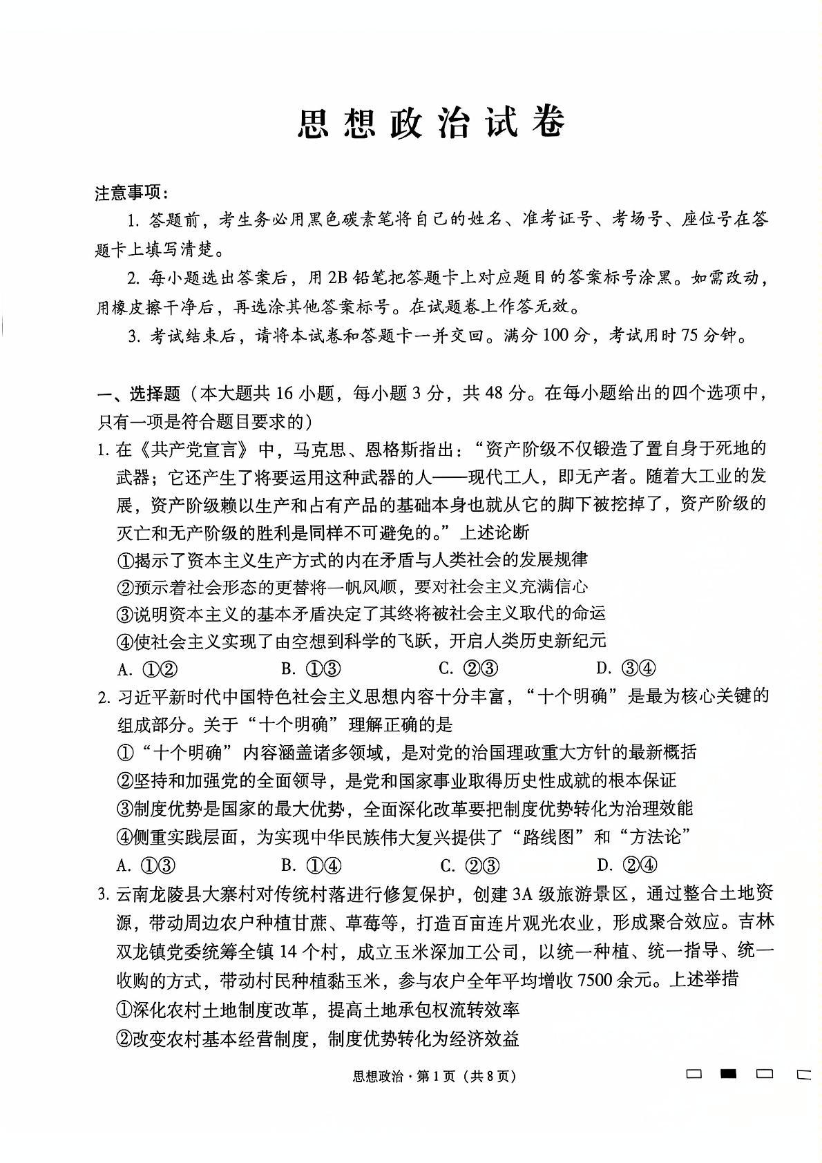 云南师范大学附属中学2025届高考适应性月考卷(七)政治