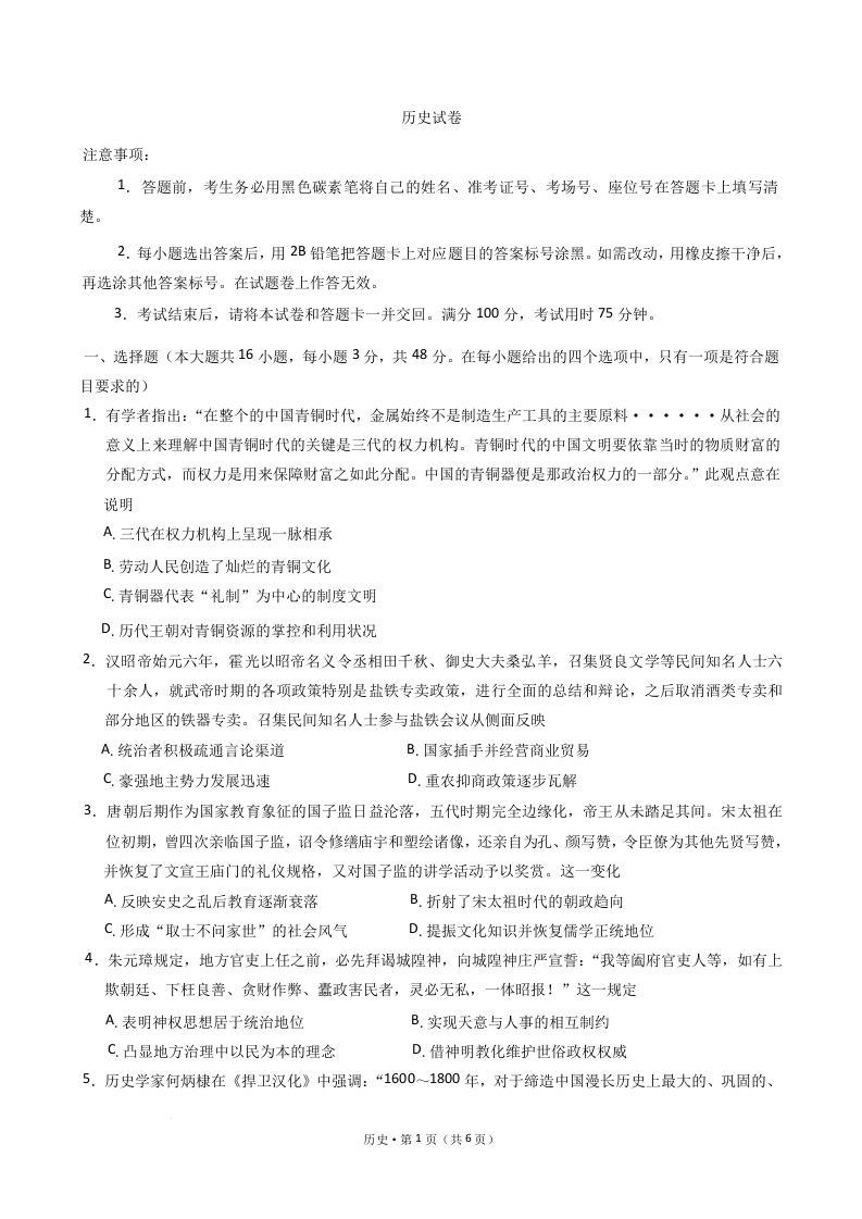 云南师范大学附属中学2025届高考适应性月考卷(七)历史+答案