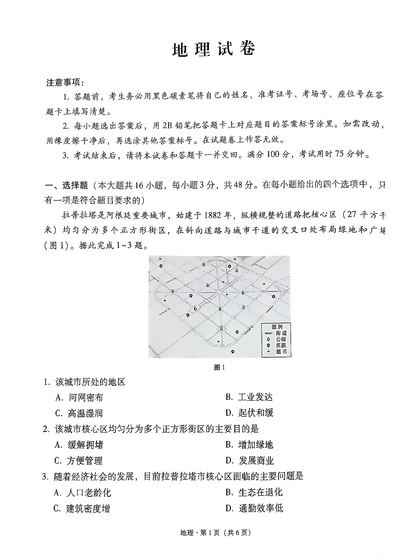 云南师范大学附属中学2025届高考适应性月考卷(七)地理