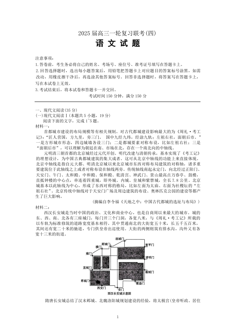 河北省区域高中2025届高三年级一轮复习联考(四)语文