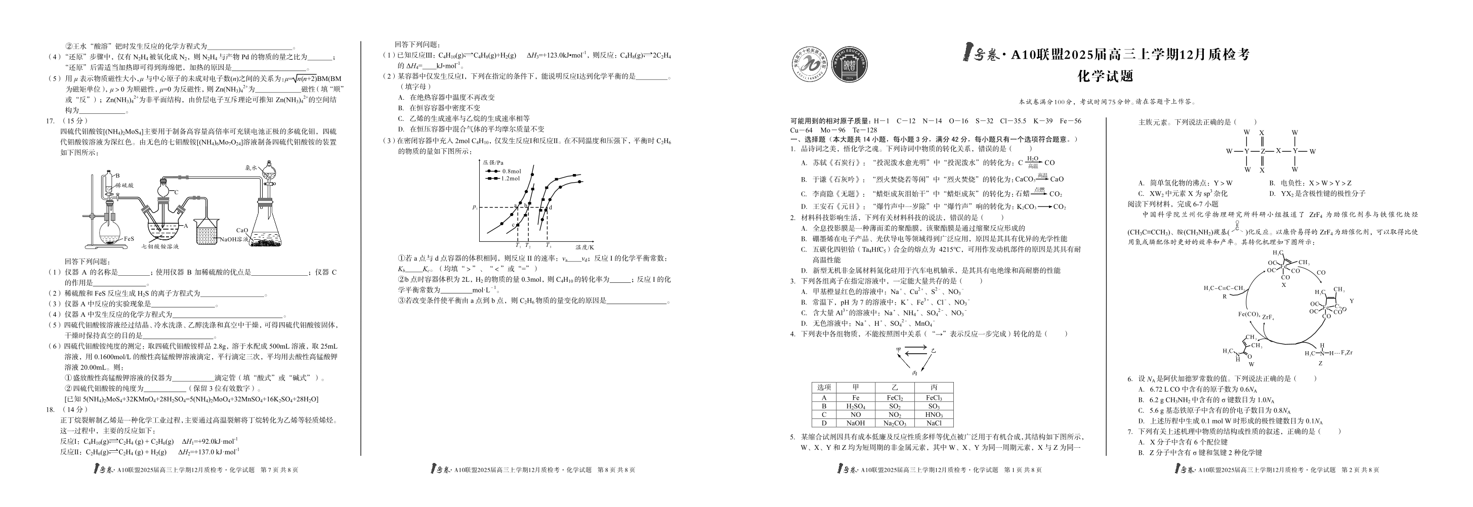 安徽省1号卷•A10联盟2025月高三上学期12月质检考化学