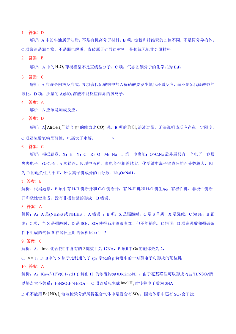 四川省成都市石室中学 2025 年高考适应性测试演练模拟考试化学答案