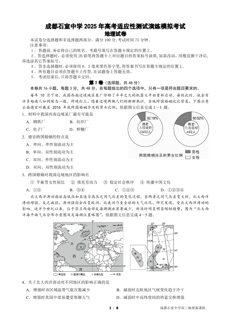 四川省成都市石室中学 2025 年高考适应性测试演练模拟考试理