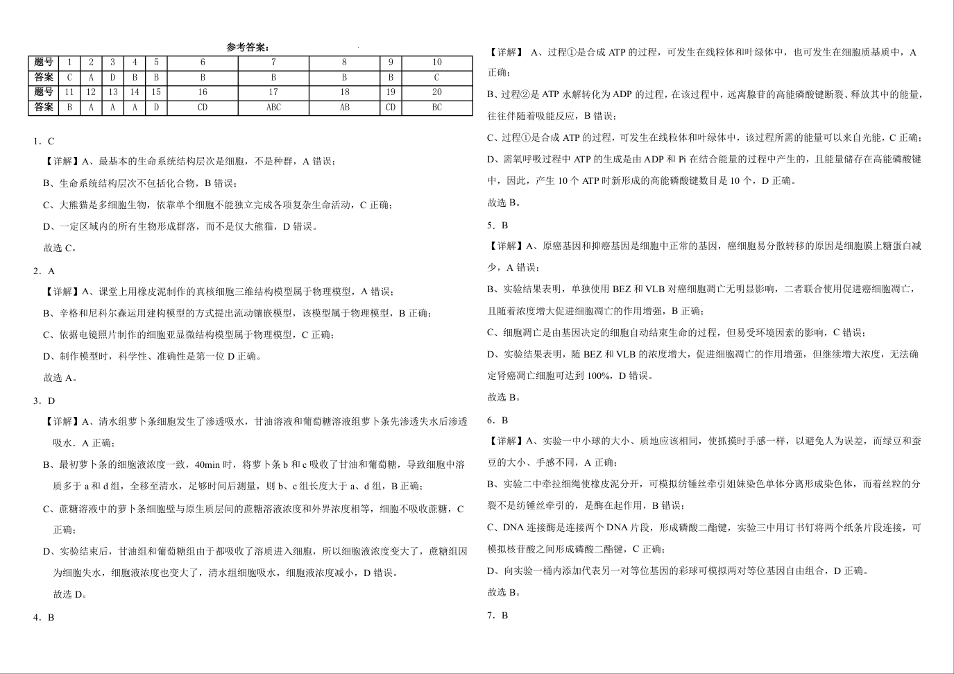 内蒙古自治区巴彦淖尔市第一中学2025届高三上学期12月第七次诊断生物答案
