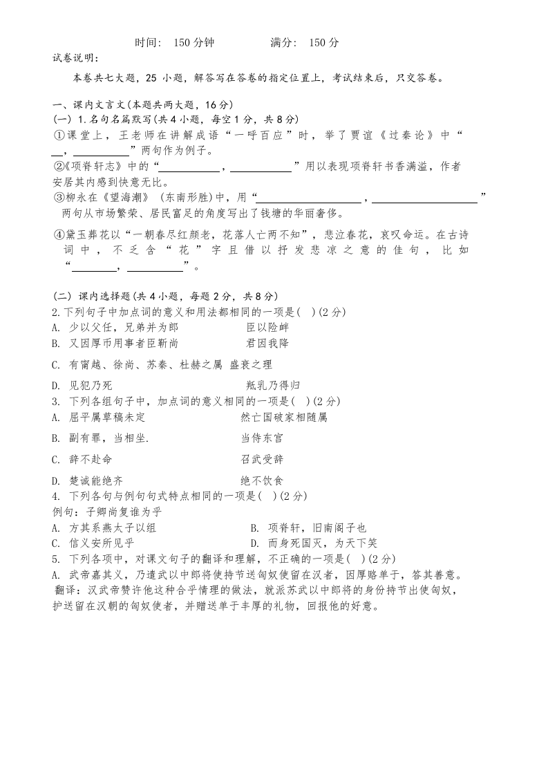 福建省师范大学附属中学2025届高三上学期二模语文