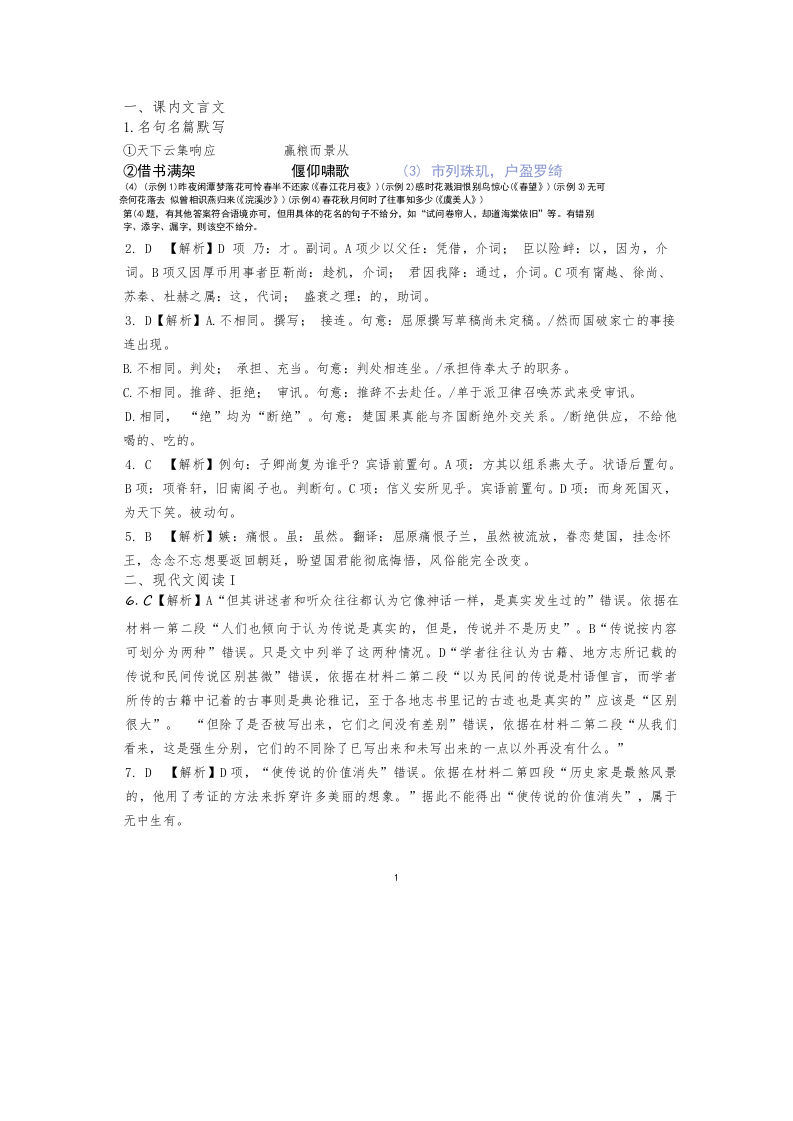 福建省师范大学附属中学2025届高三上学期二模语文答案